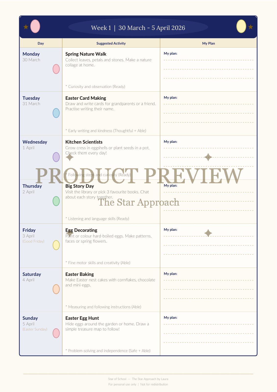 Easter Holiday Planner